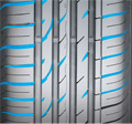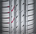 2. Efektīva ūdens novadīšana Ar datortehnikas palīdzību izveidotās četras garenās rievas un viegli izliektās sānu rievas, nodrošina efektīvu ūdens novadīšanu un noturību pret akvaplanēšanu. |
