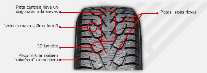 Jauns dizains optimālai protektora cietībai un radžu izvietojumam.